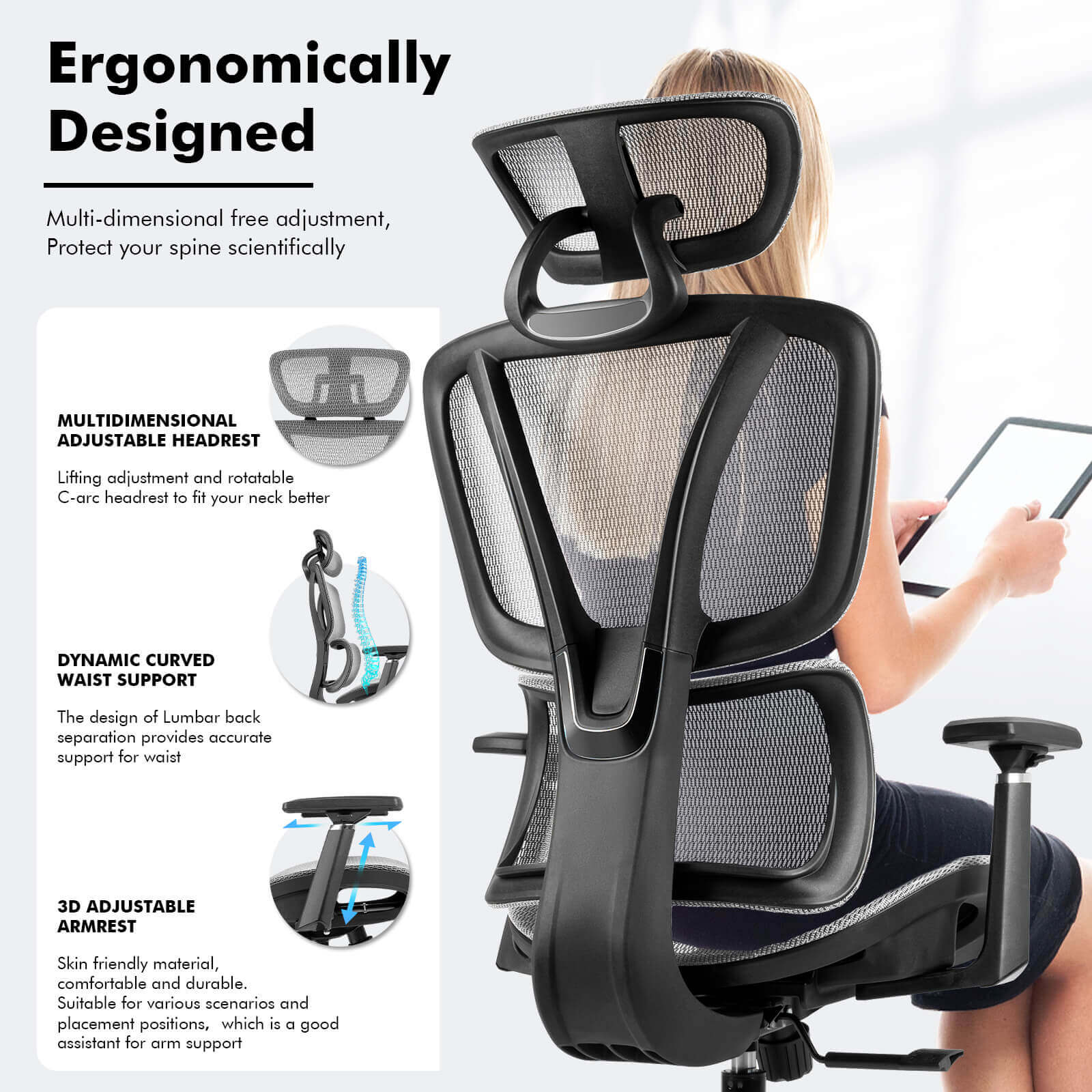 【NEW ARRIVAL】Ferghana Ergonomic Mesh Office Chair High Back Executive Swivel Chair with 400Lbs Weight Capacity(Dark Grey)