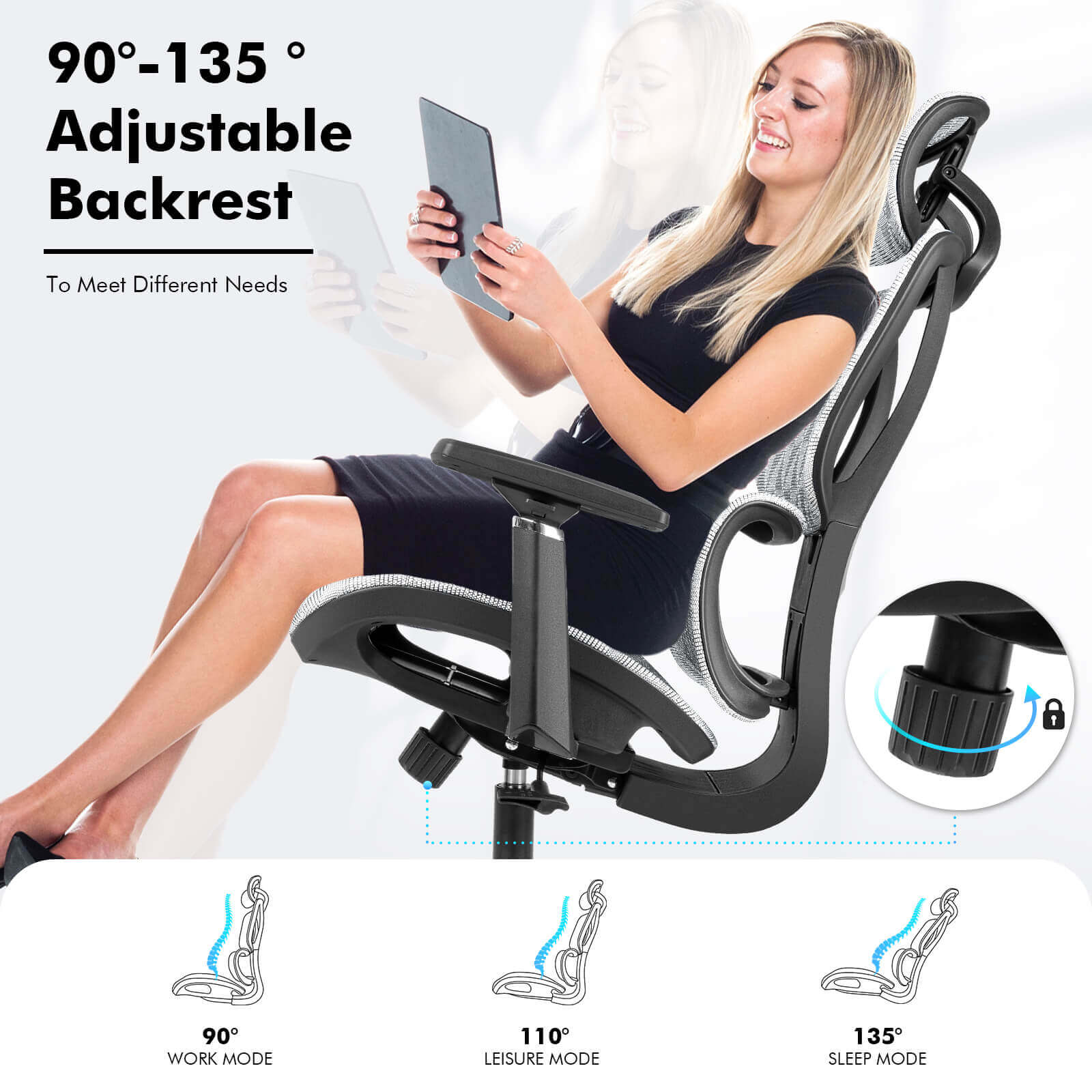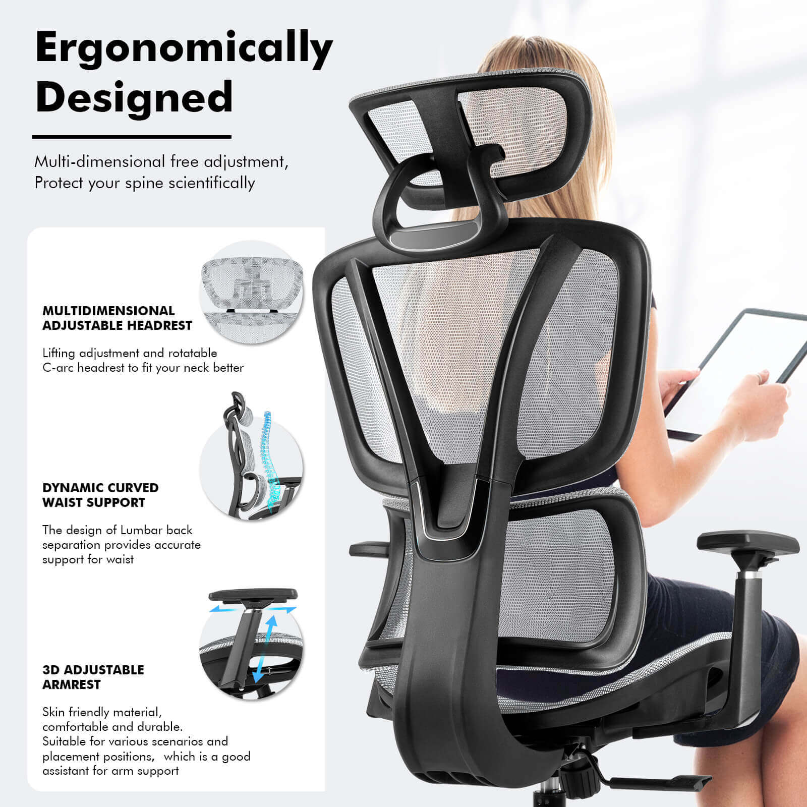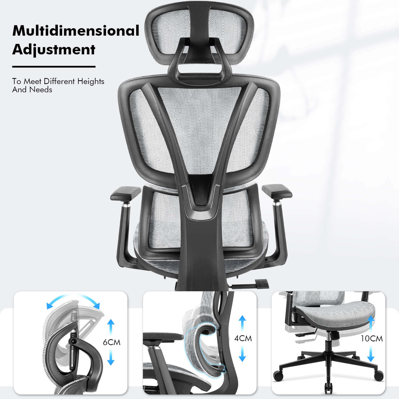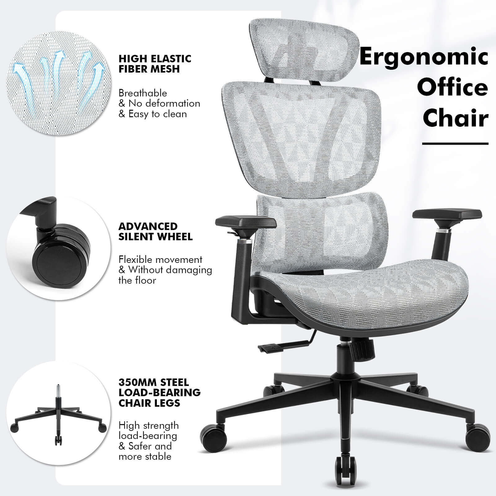 【NEW ARRIVAL】Ferghana Ergonomic Mesh Office Chair High Back Executive Swivel Chair with 400Lbs Weight Capacity(Light Grey)