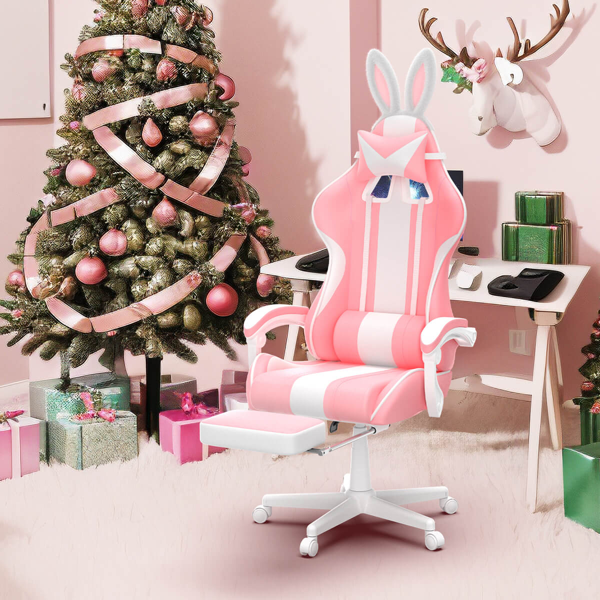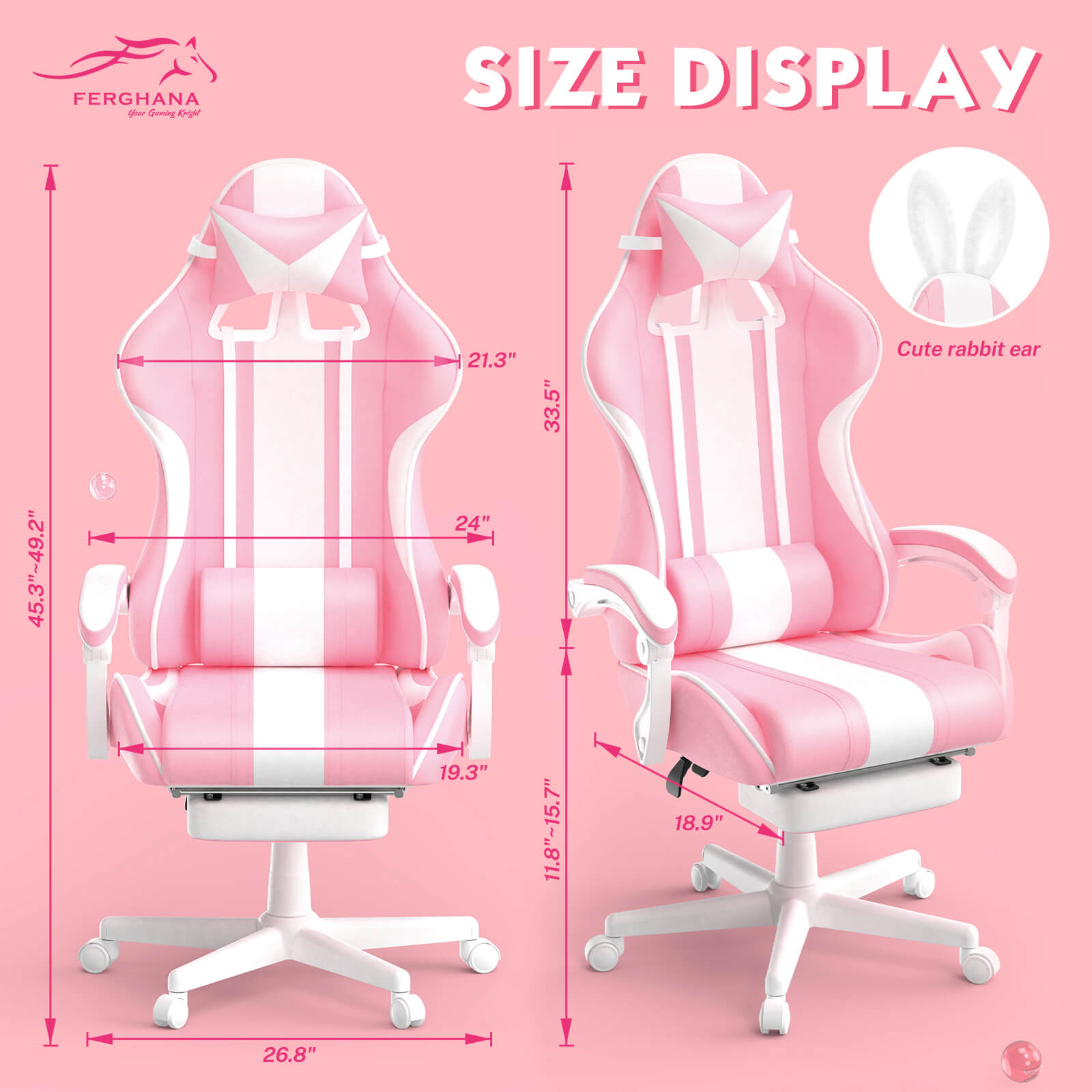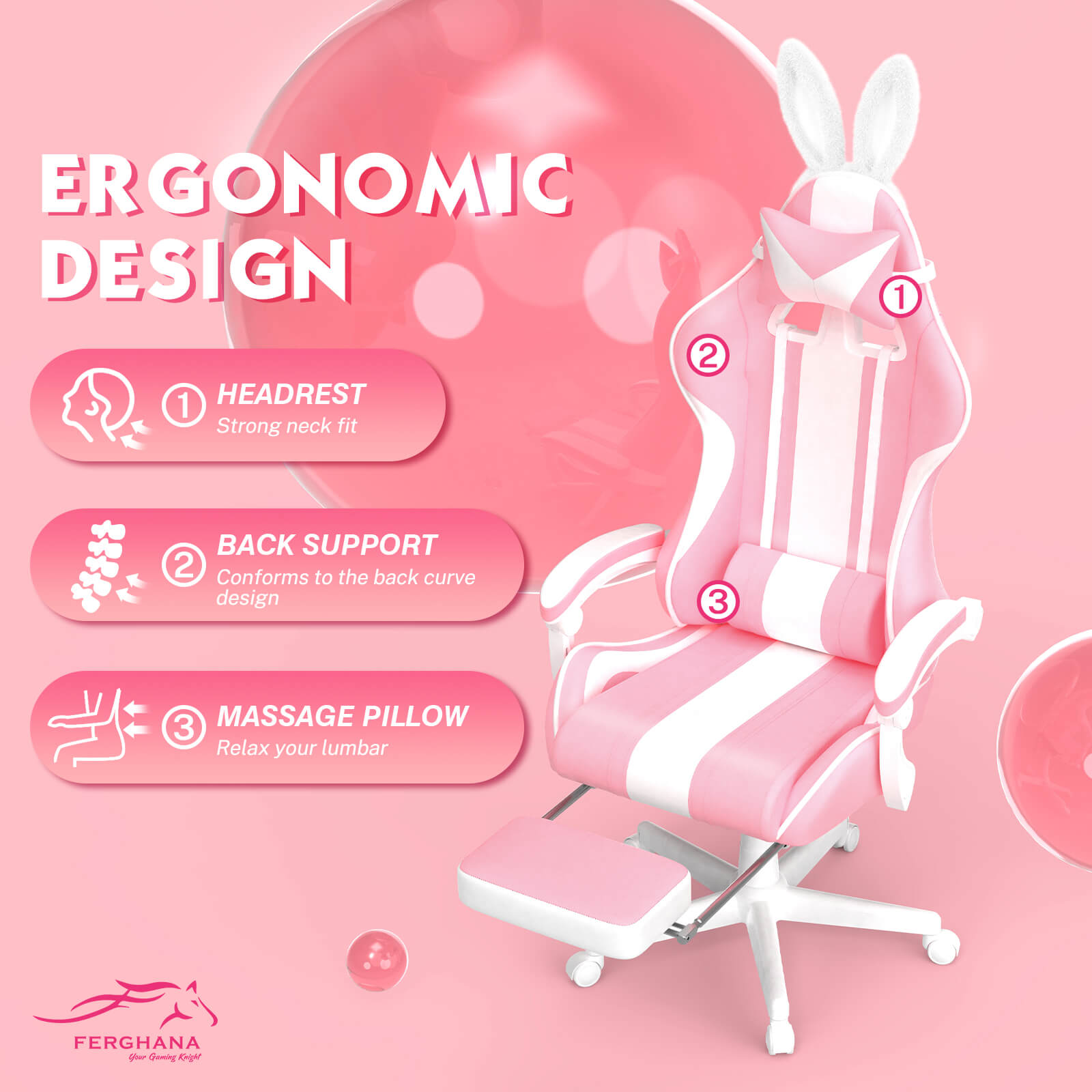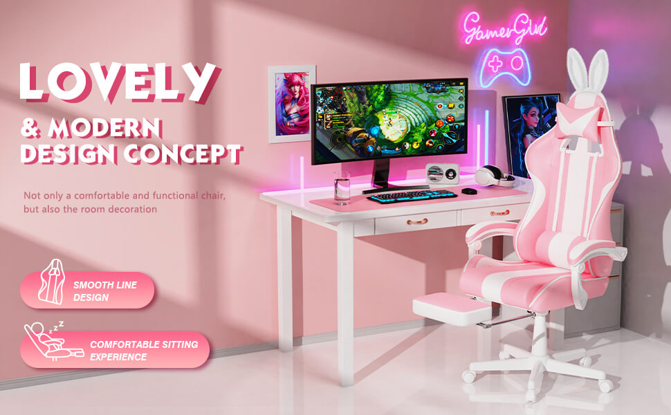 【Best Seller】Ferghana Cute Bunny Pink High Back Ergonomic Gaming Chair