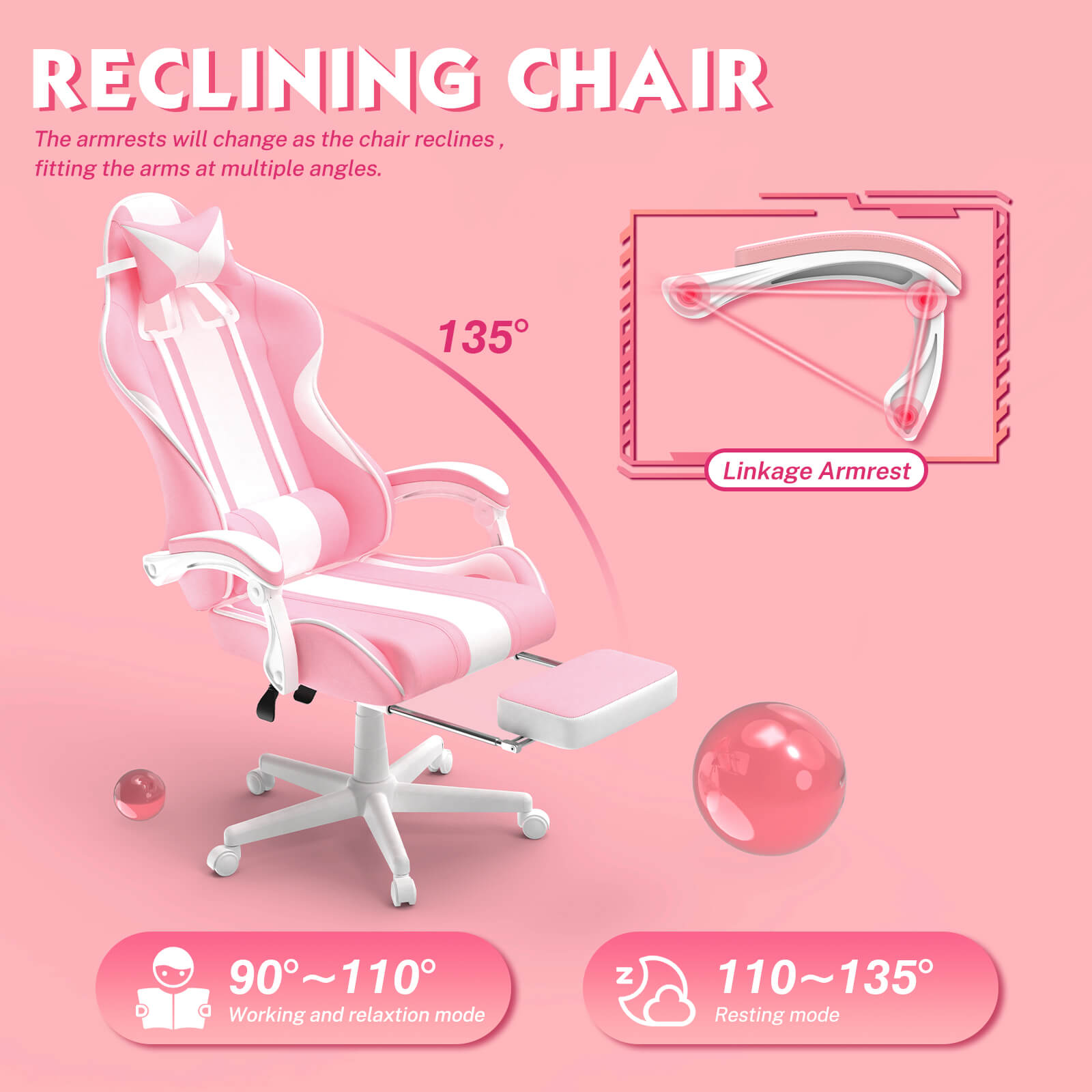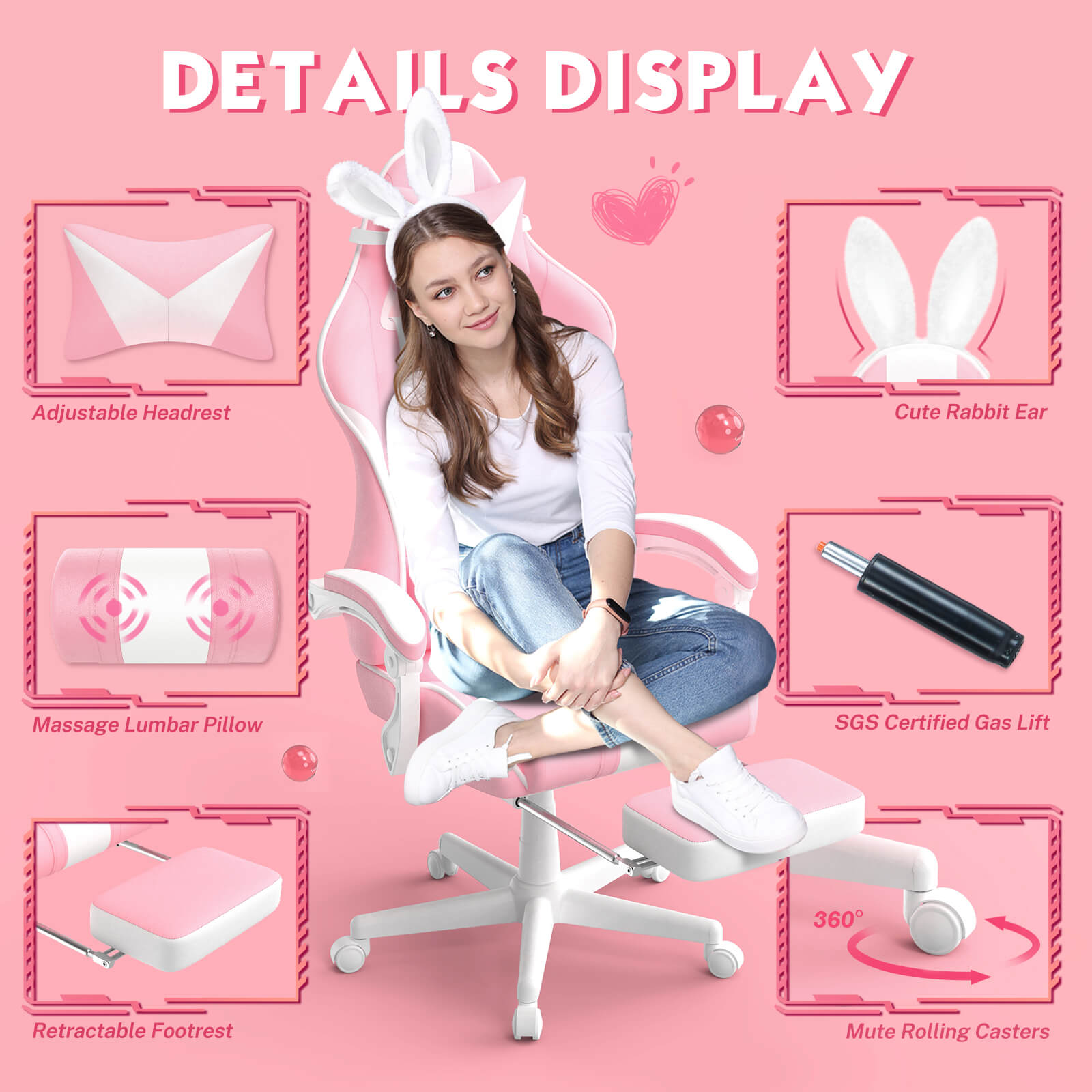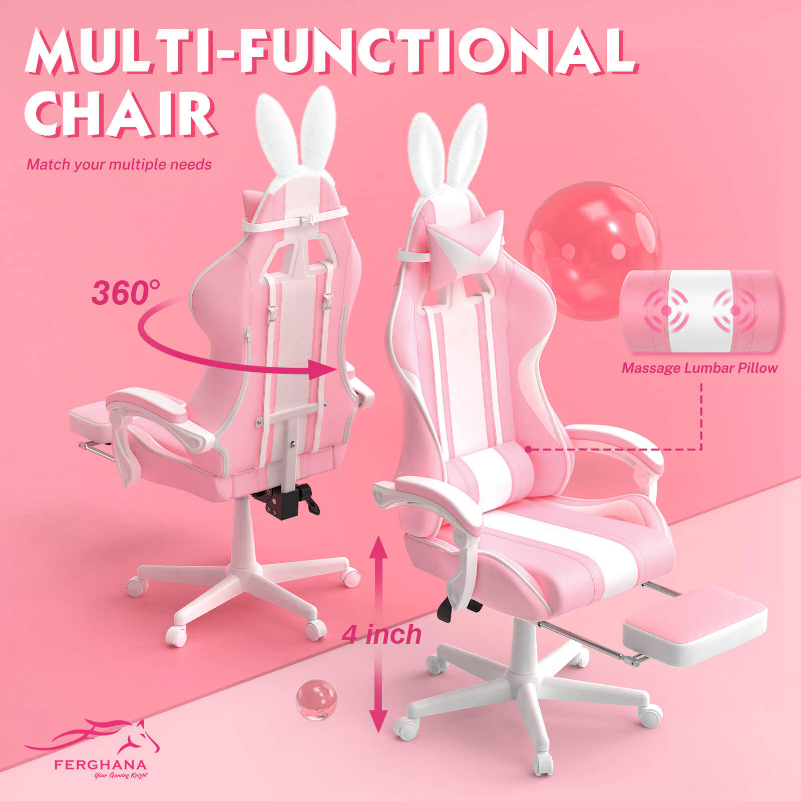【Best Seller】Ferghana Cute Bunny Pink High Back Ergonomic Gaming Chair