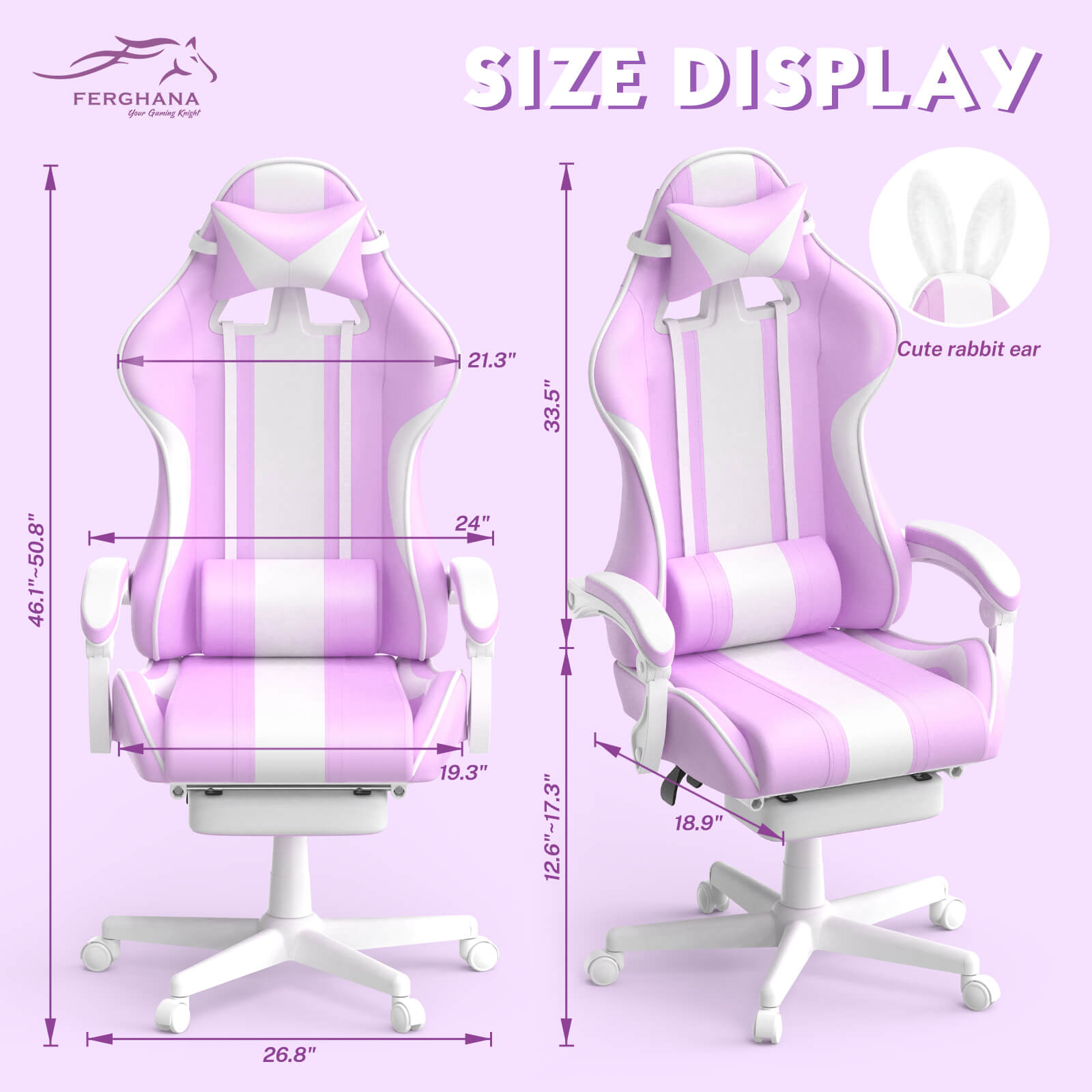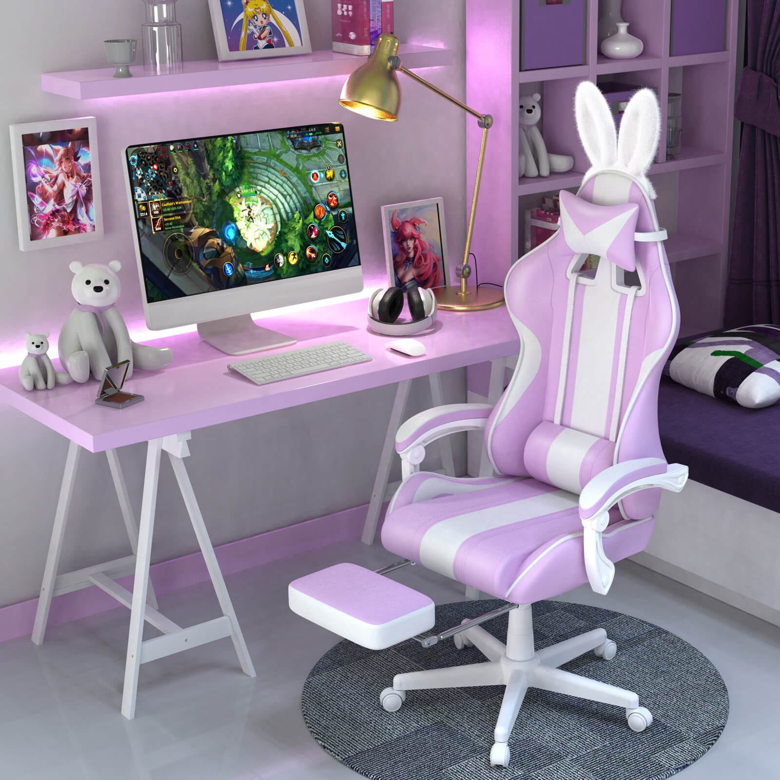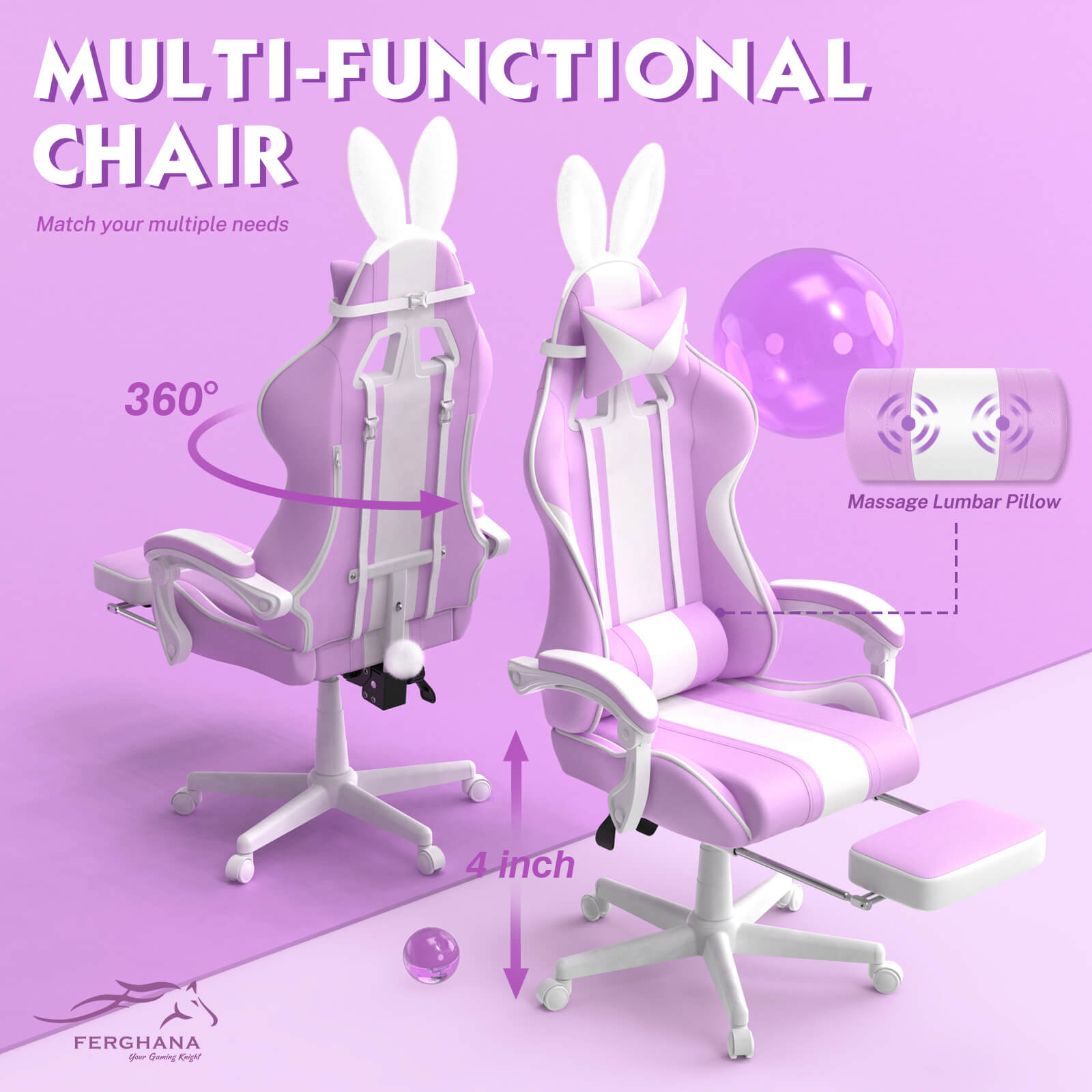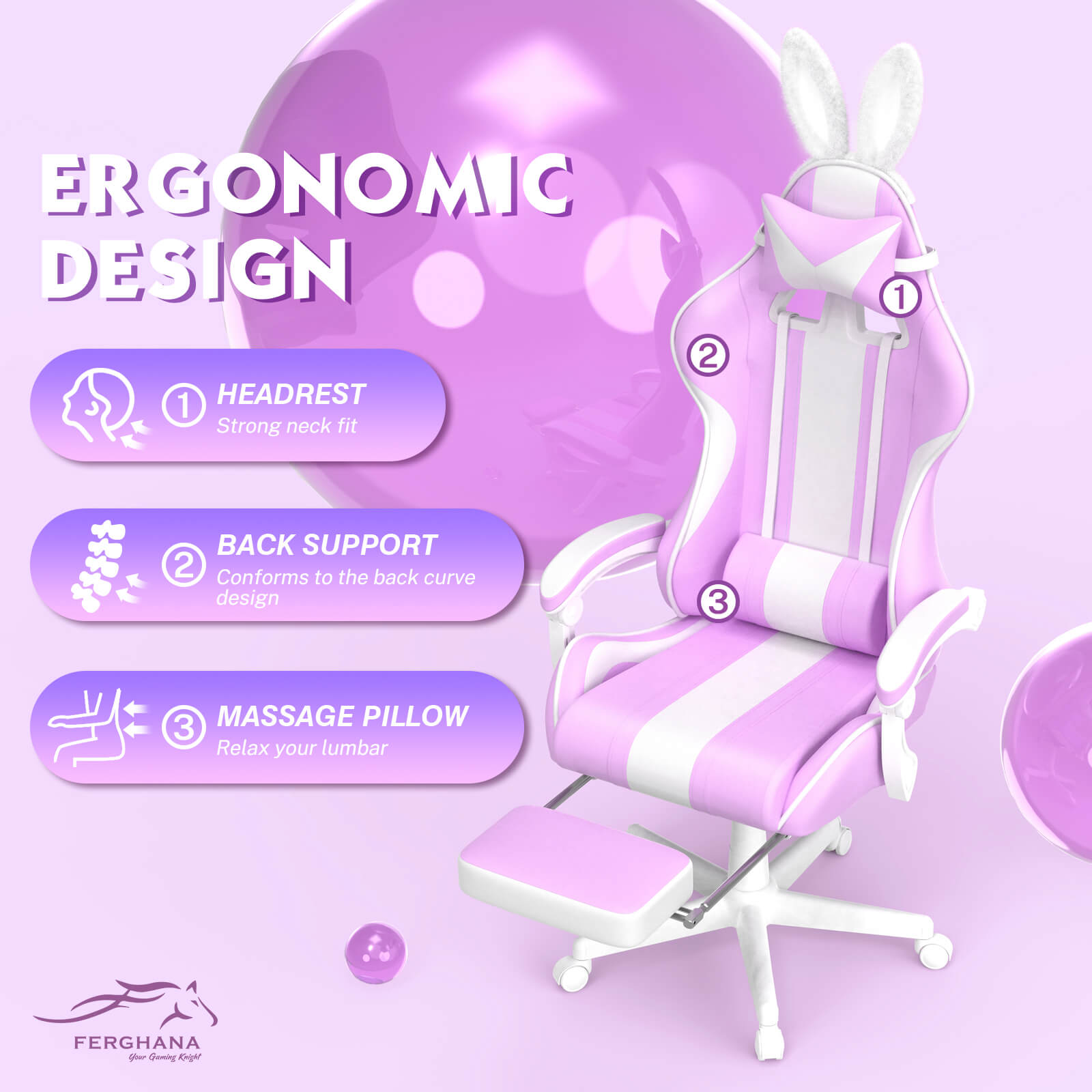 【With Bunny Ear】Ferghana Light Purple Ergonomic Cute Gamer Chair with Footrest