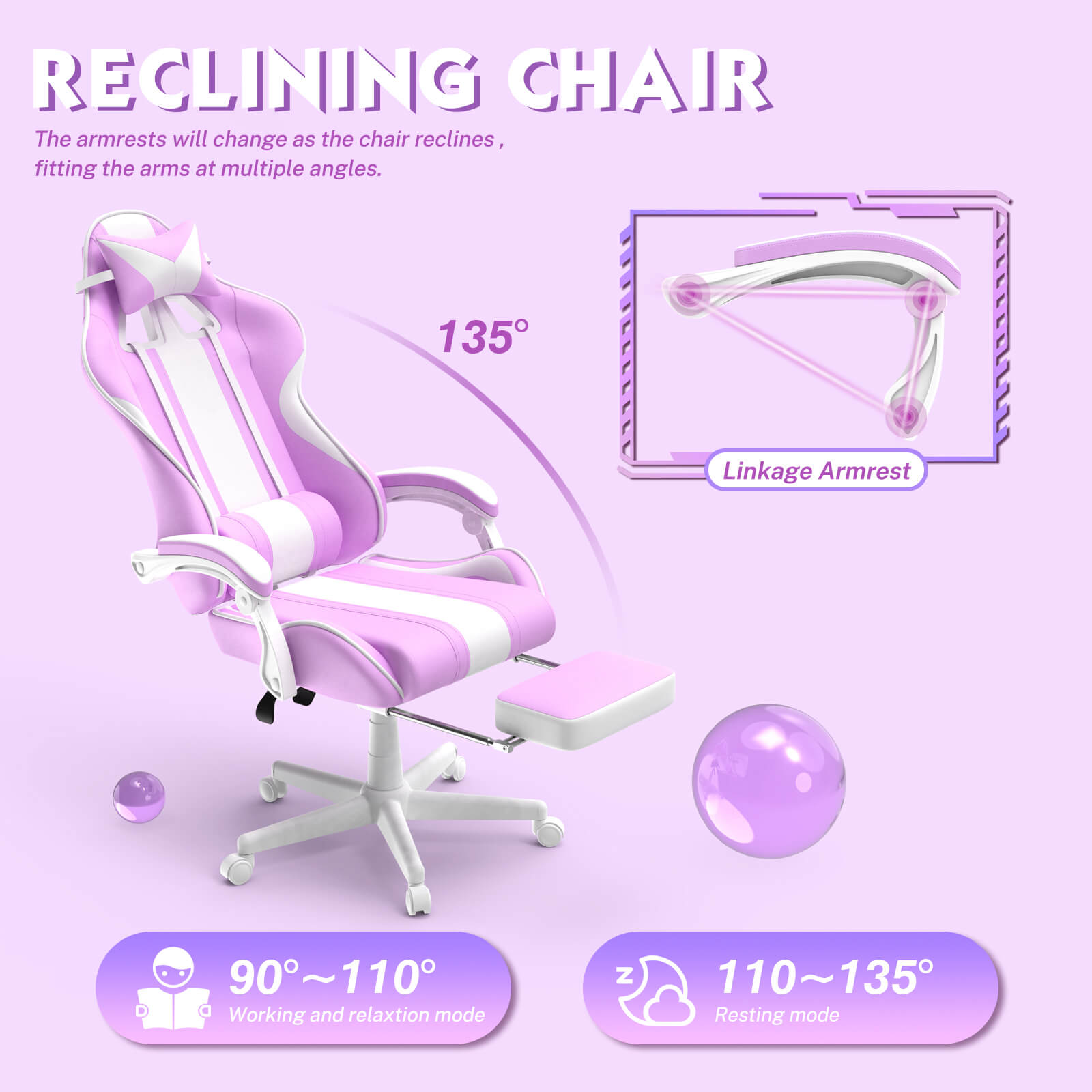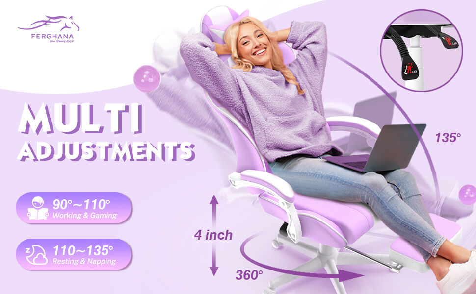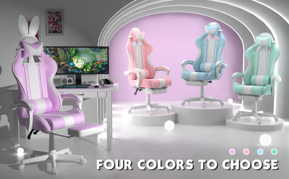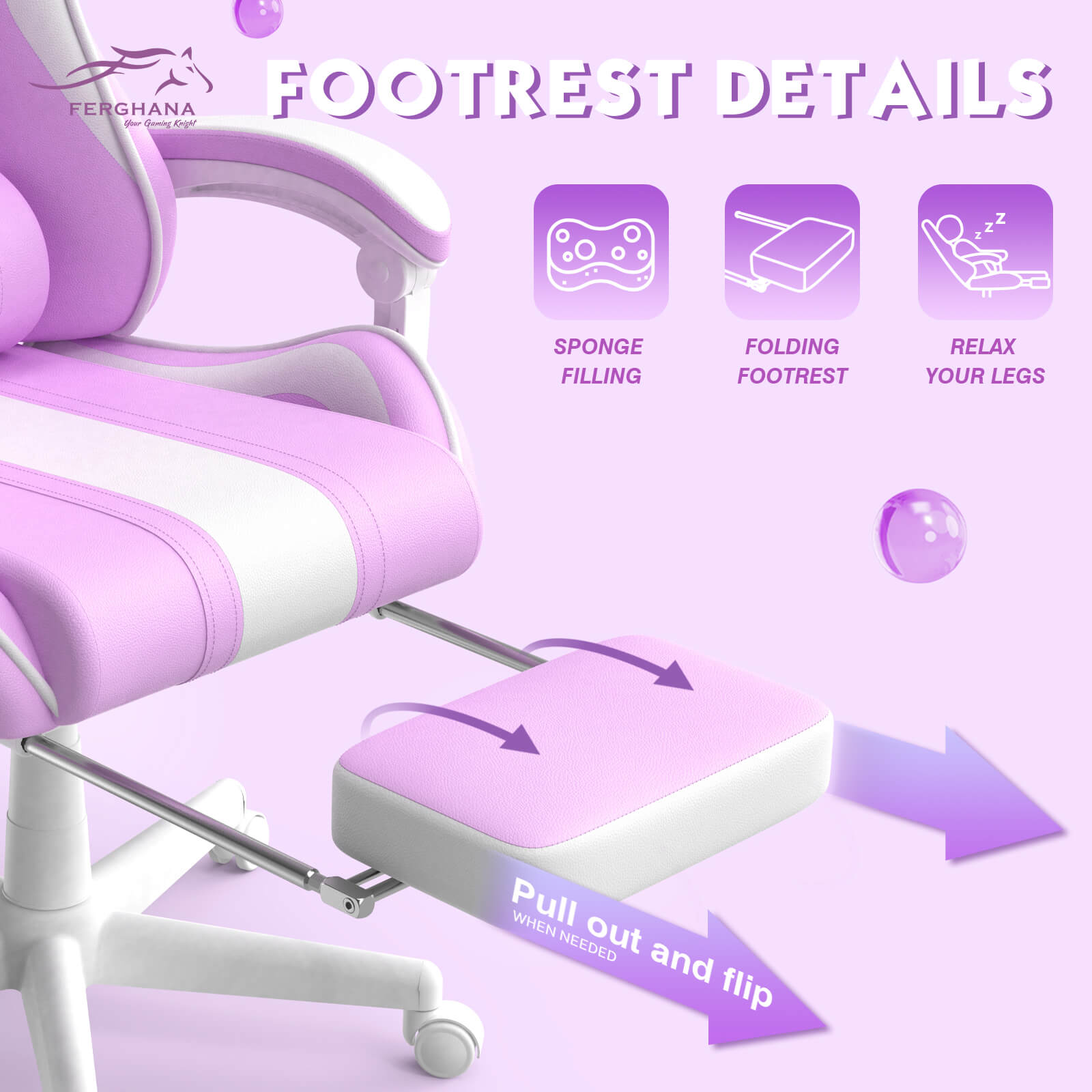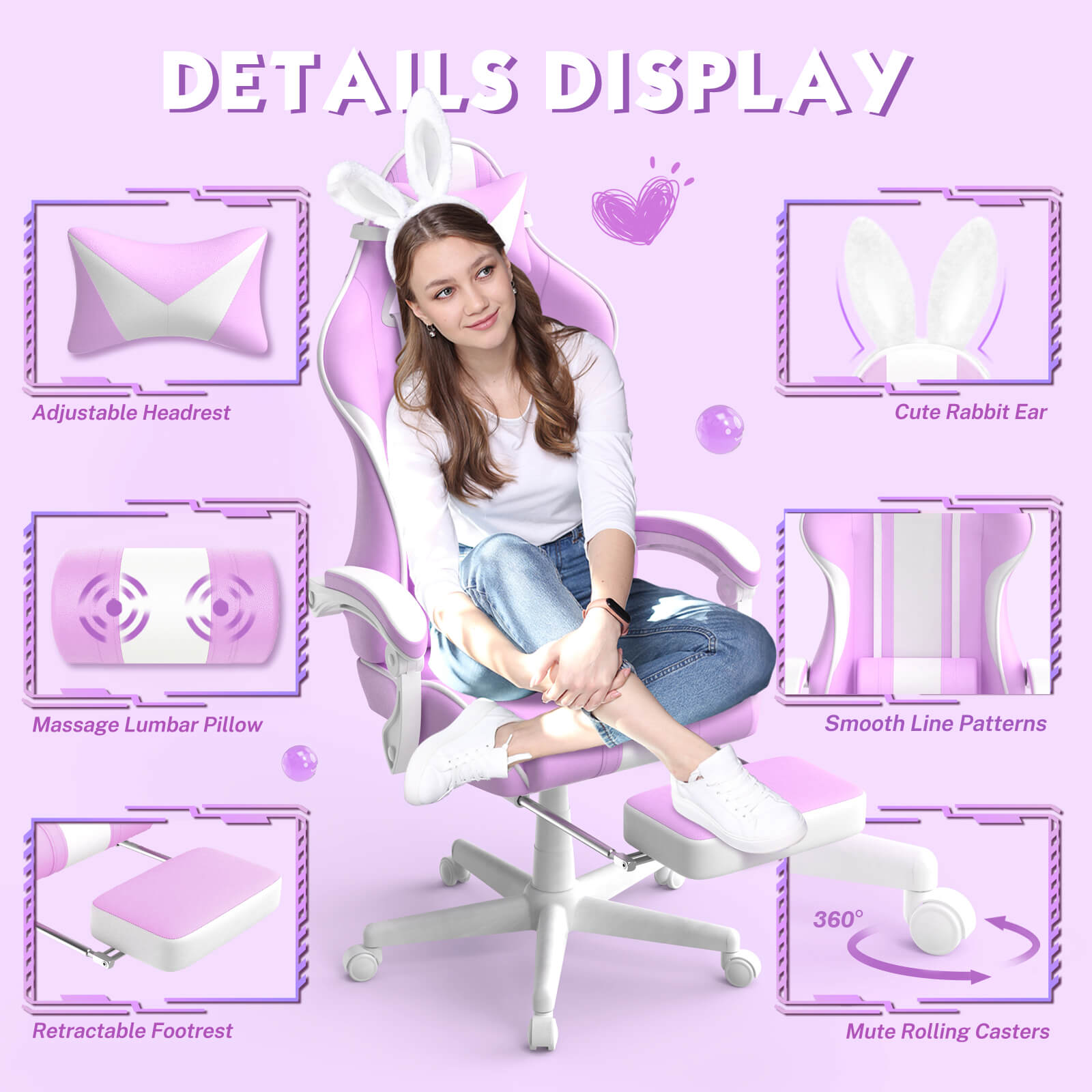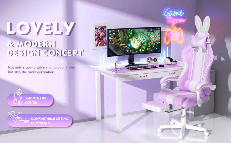 【With Bunny Ear】Ferghana Light Purple Ergonomic Cute Gamer Chair with Footrest