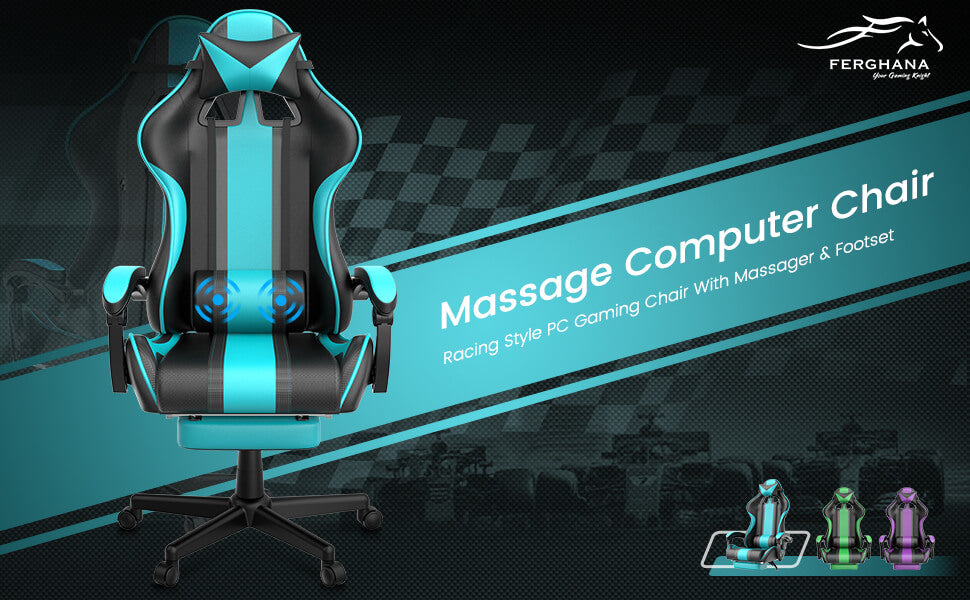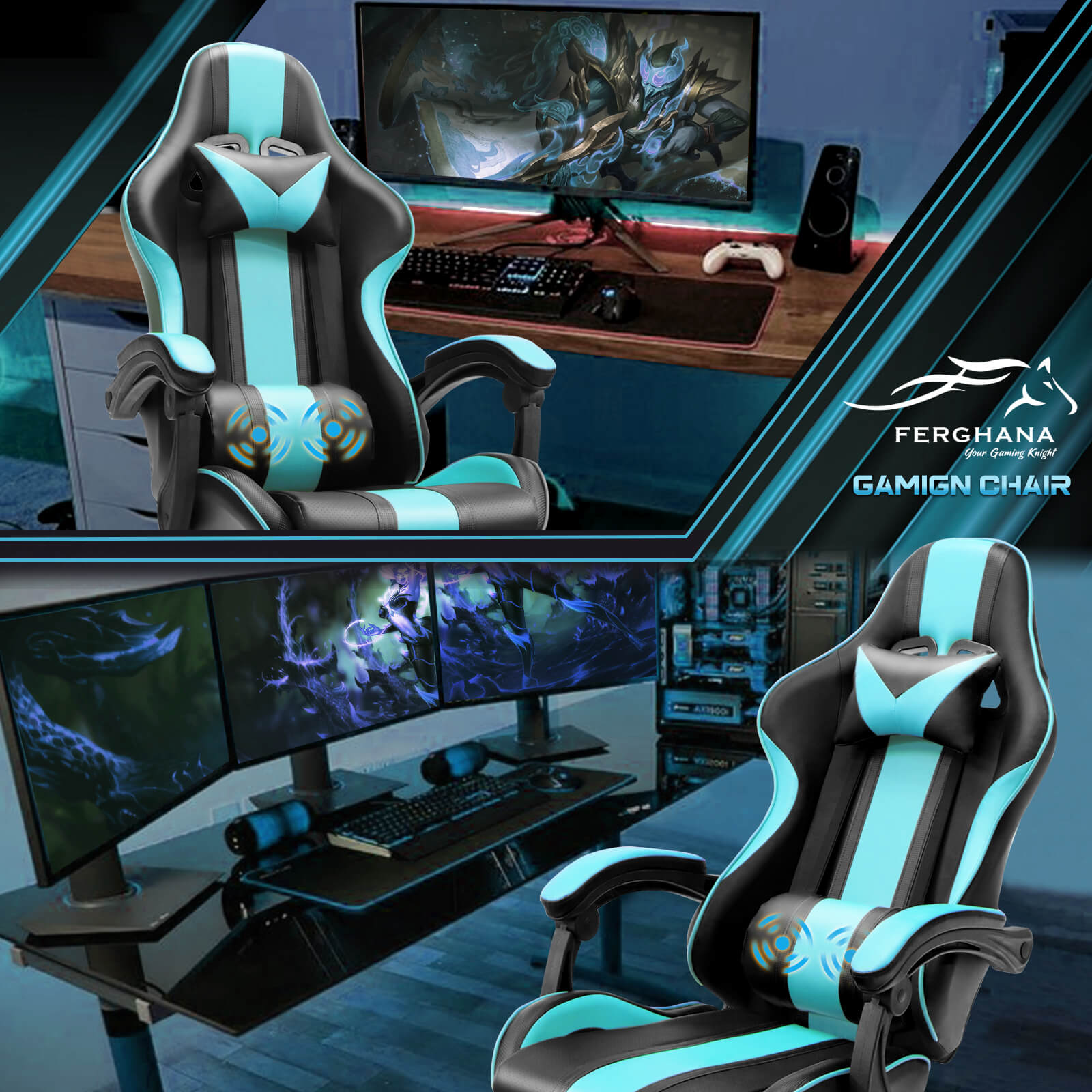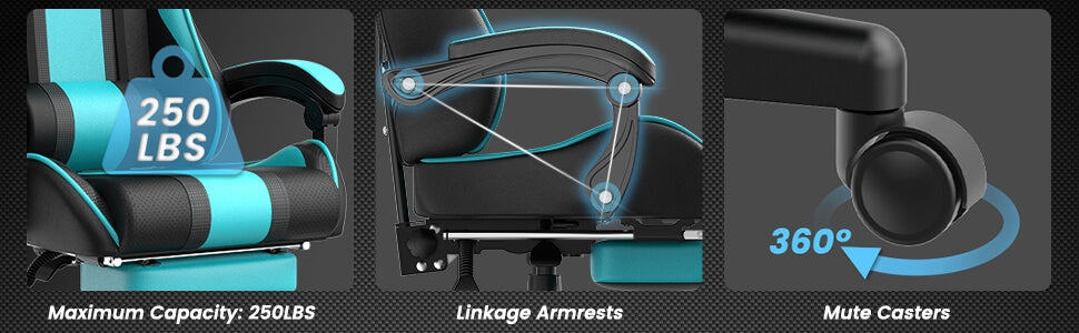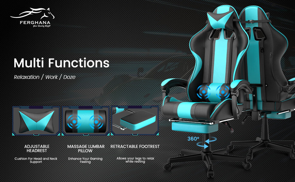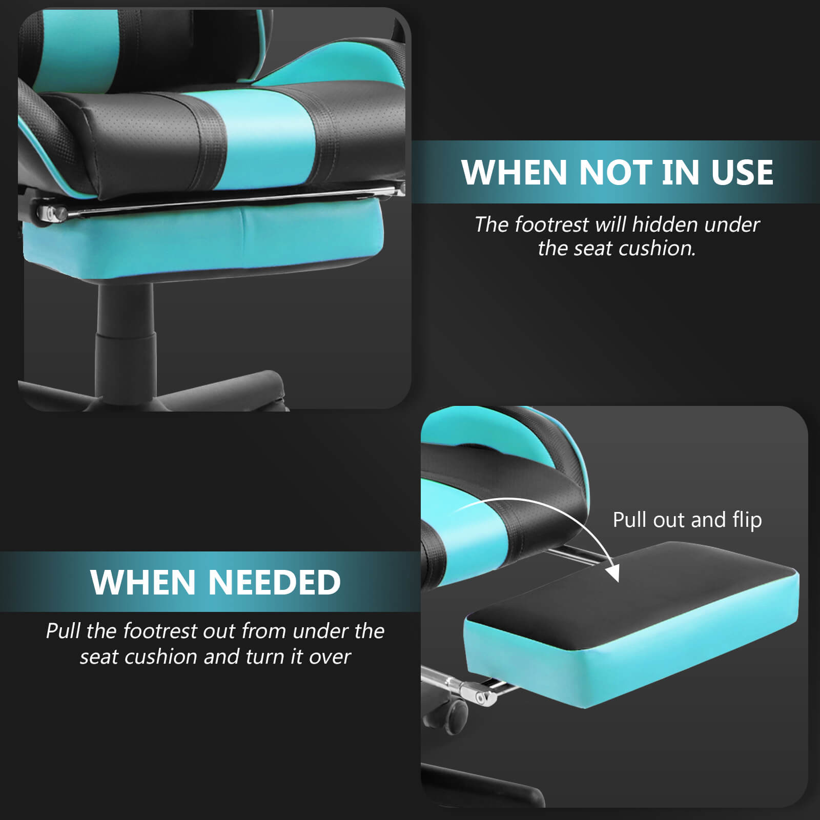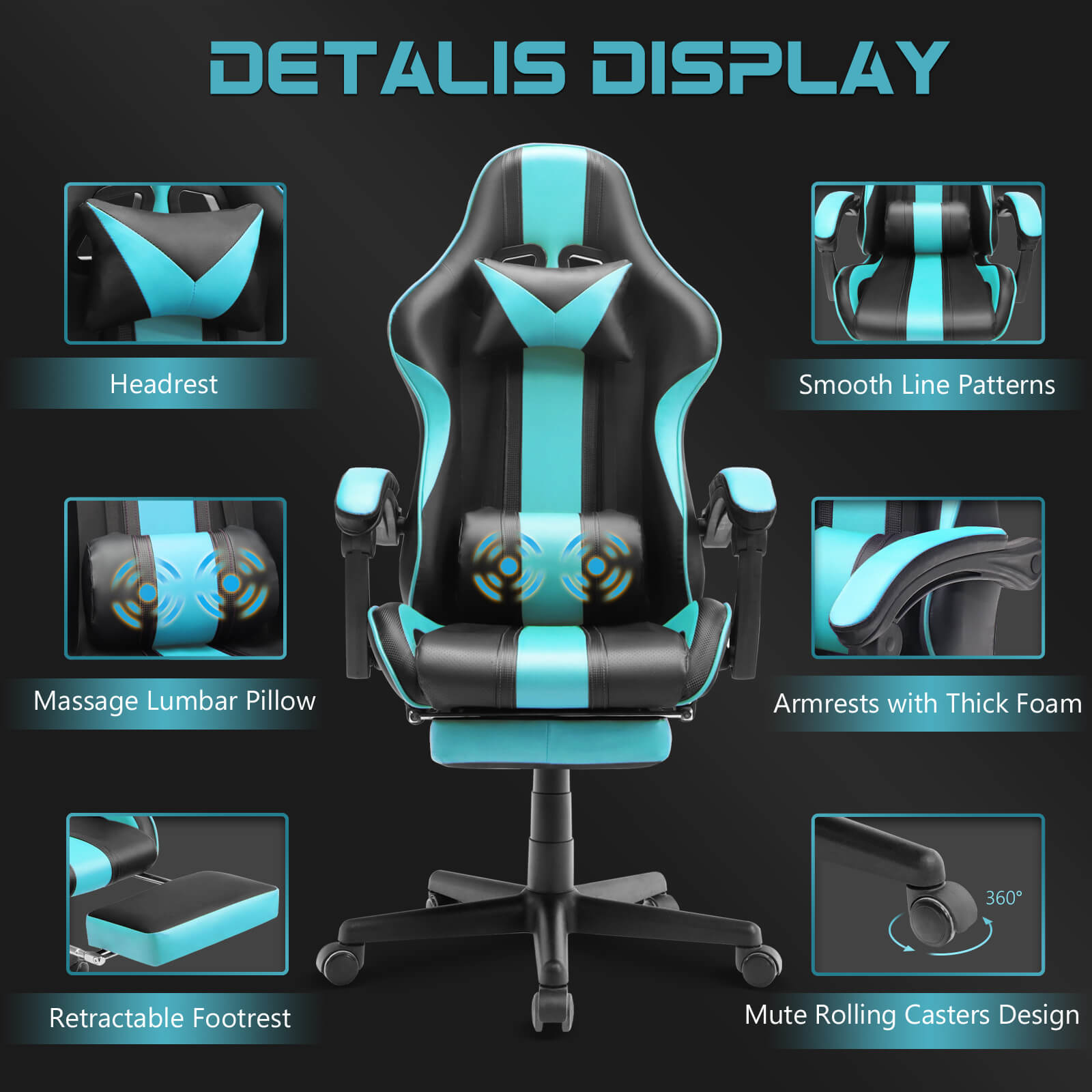 【Only 9 items left】Muses Series Miami Blue Gaming Chair with Footrest E-Sports Racing Game Chair