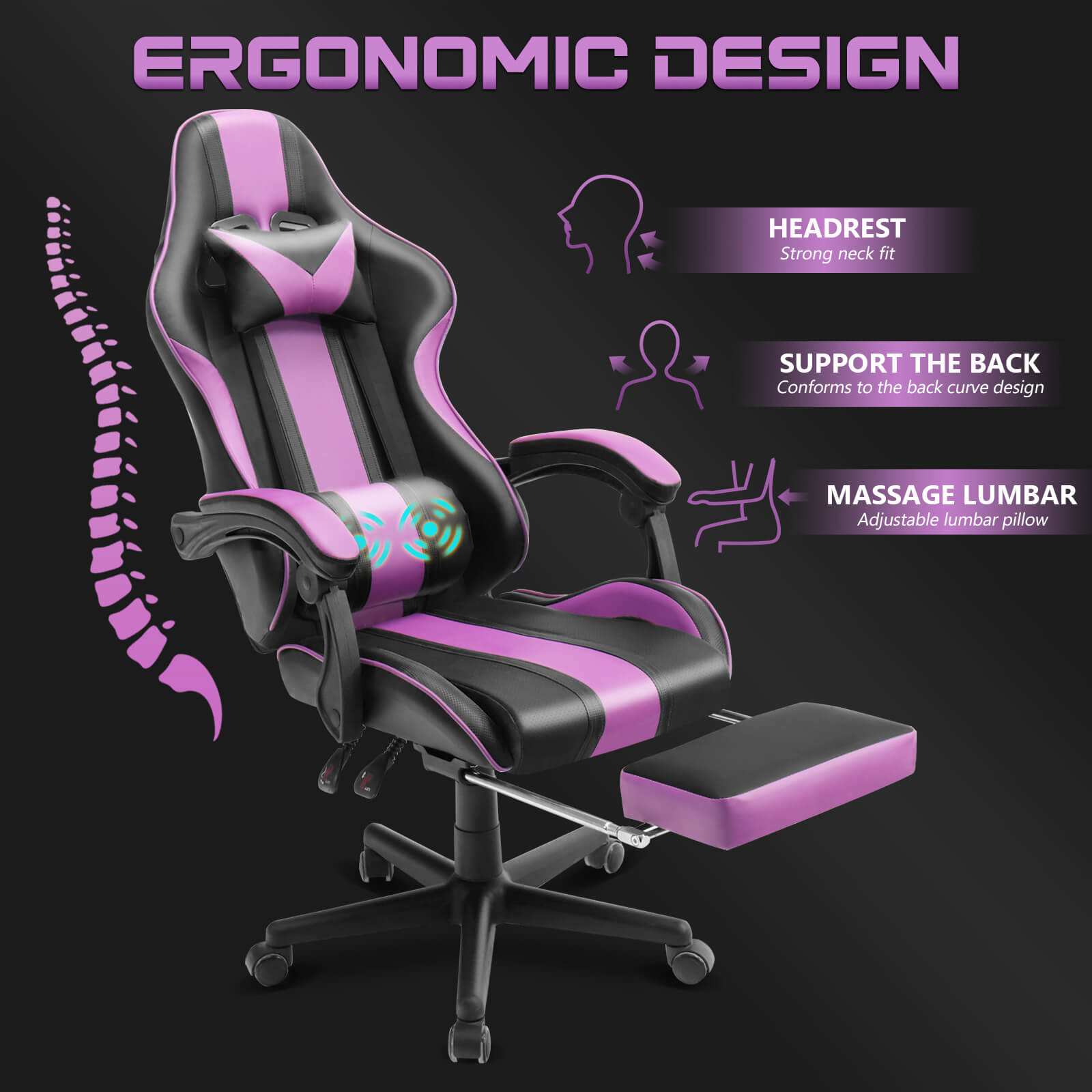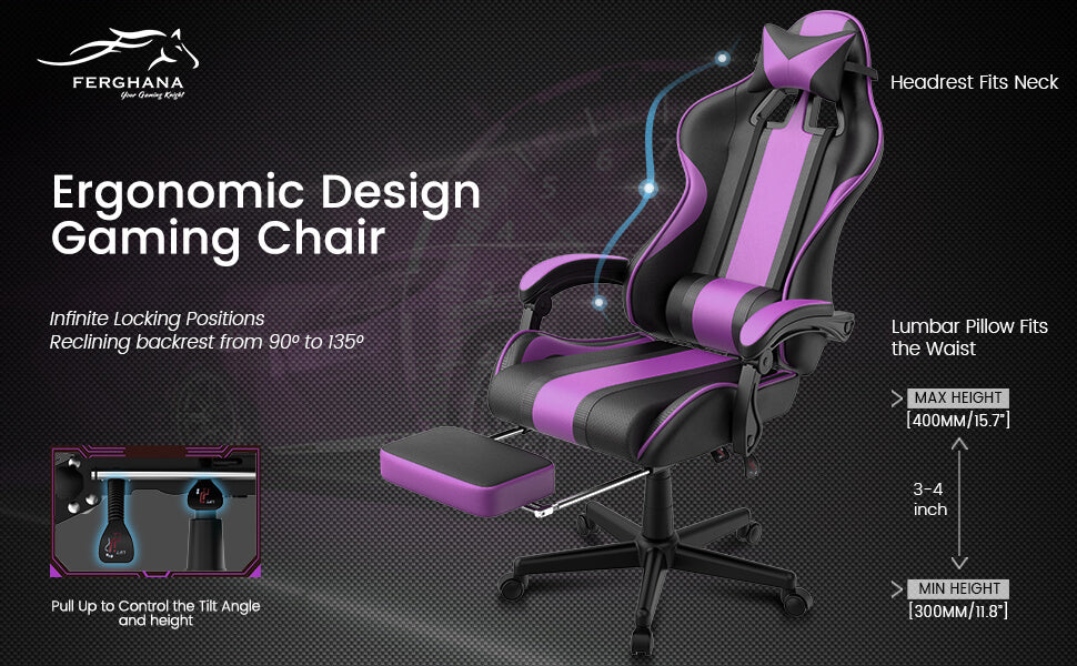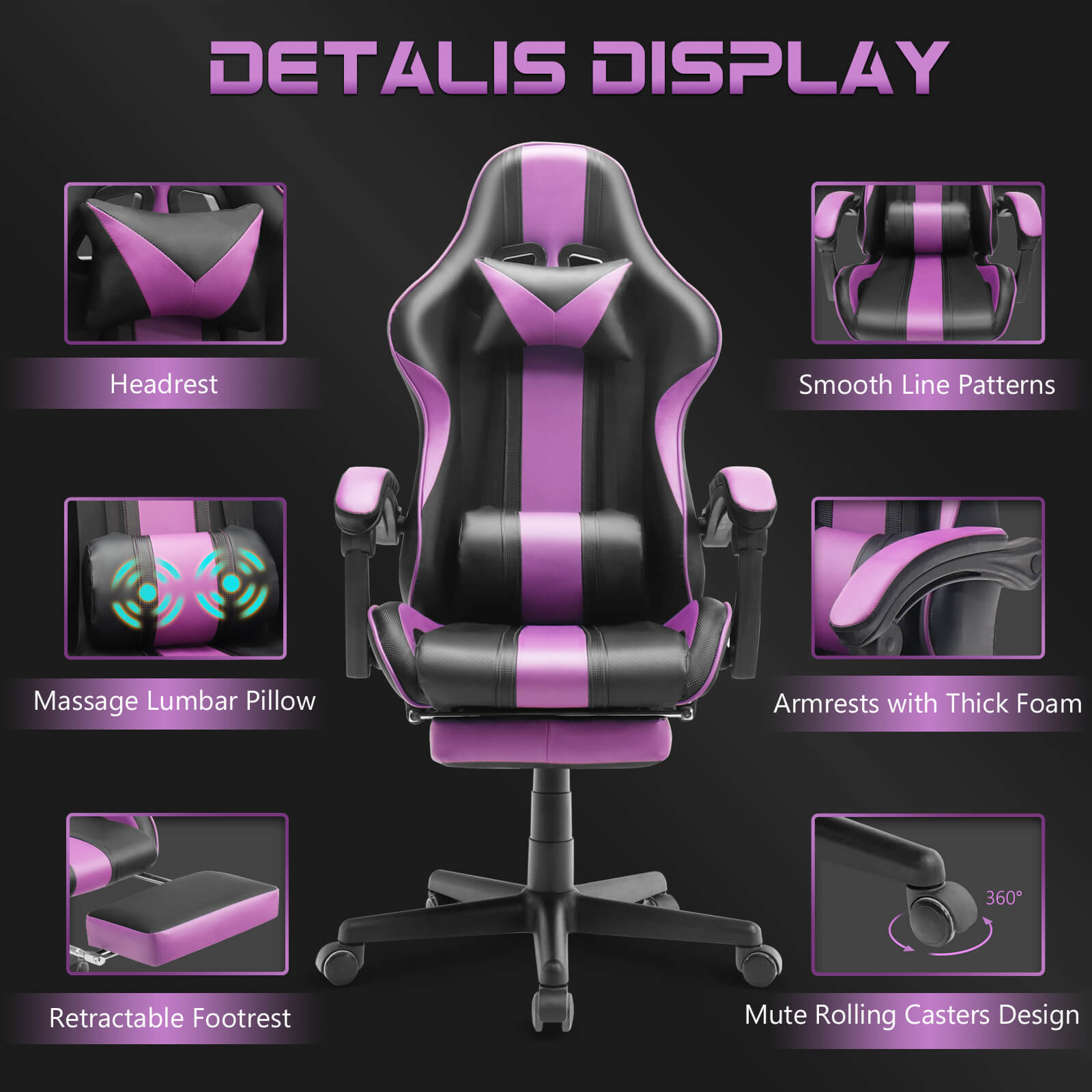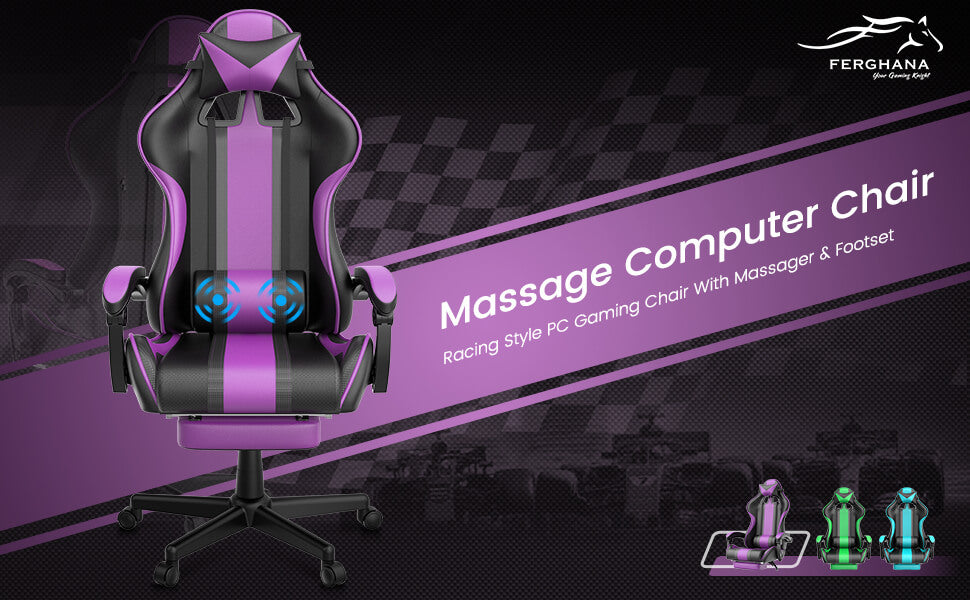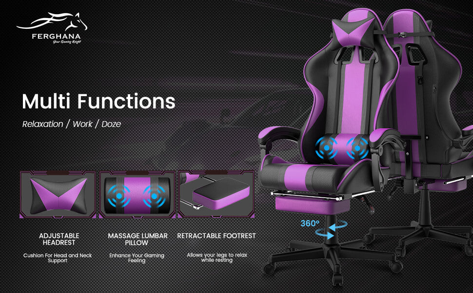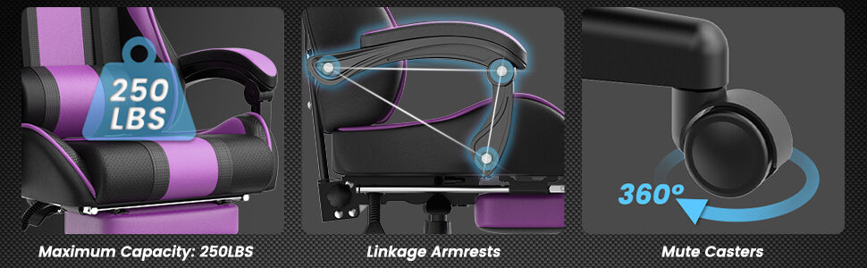 【Only 9 items left】Muses Series Purple Gaming Chairs with Footrest E-Sports Racing Game Chair