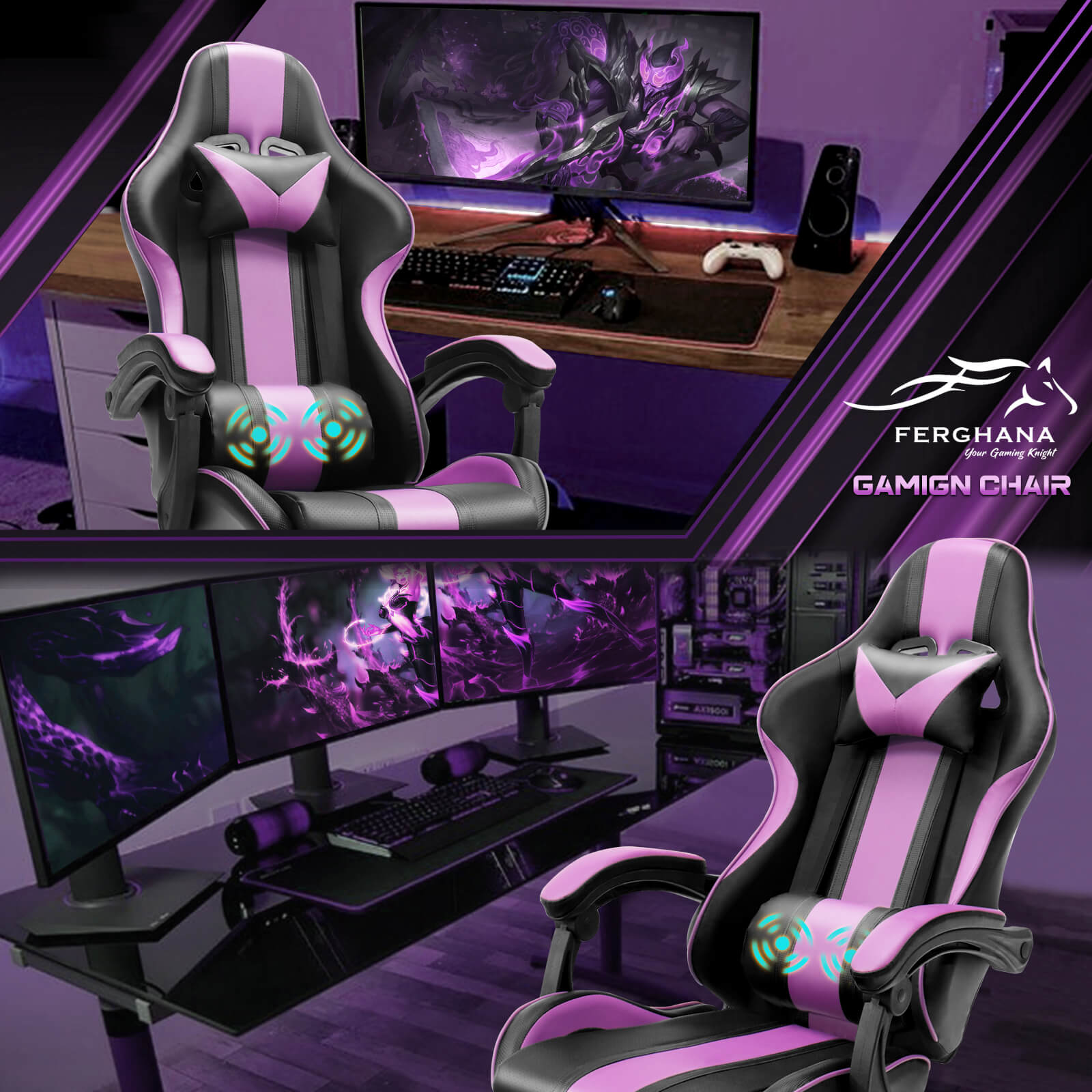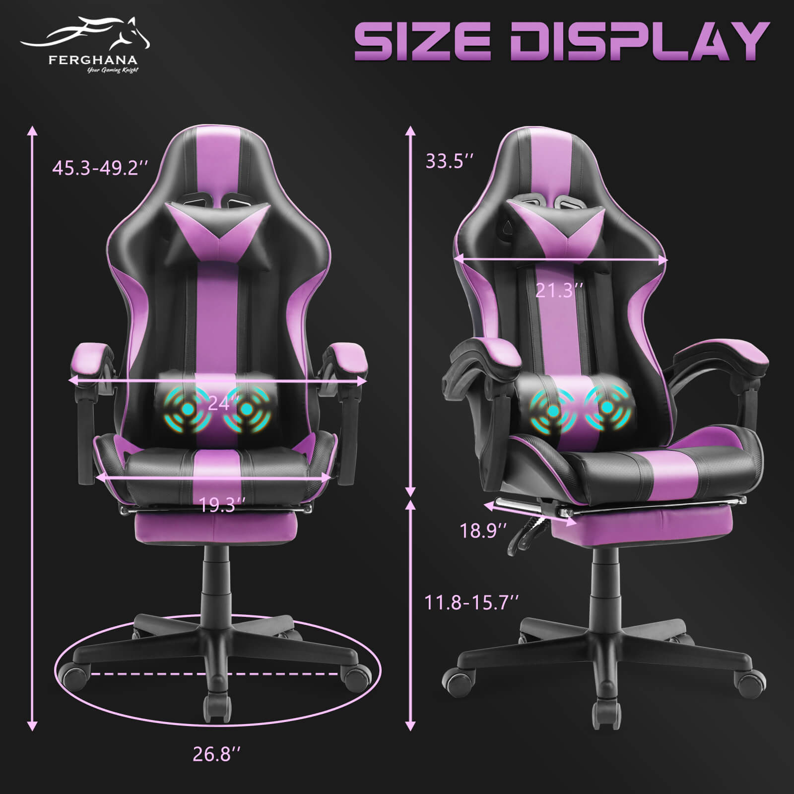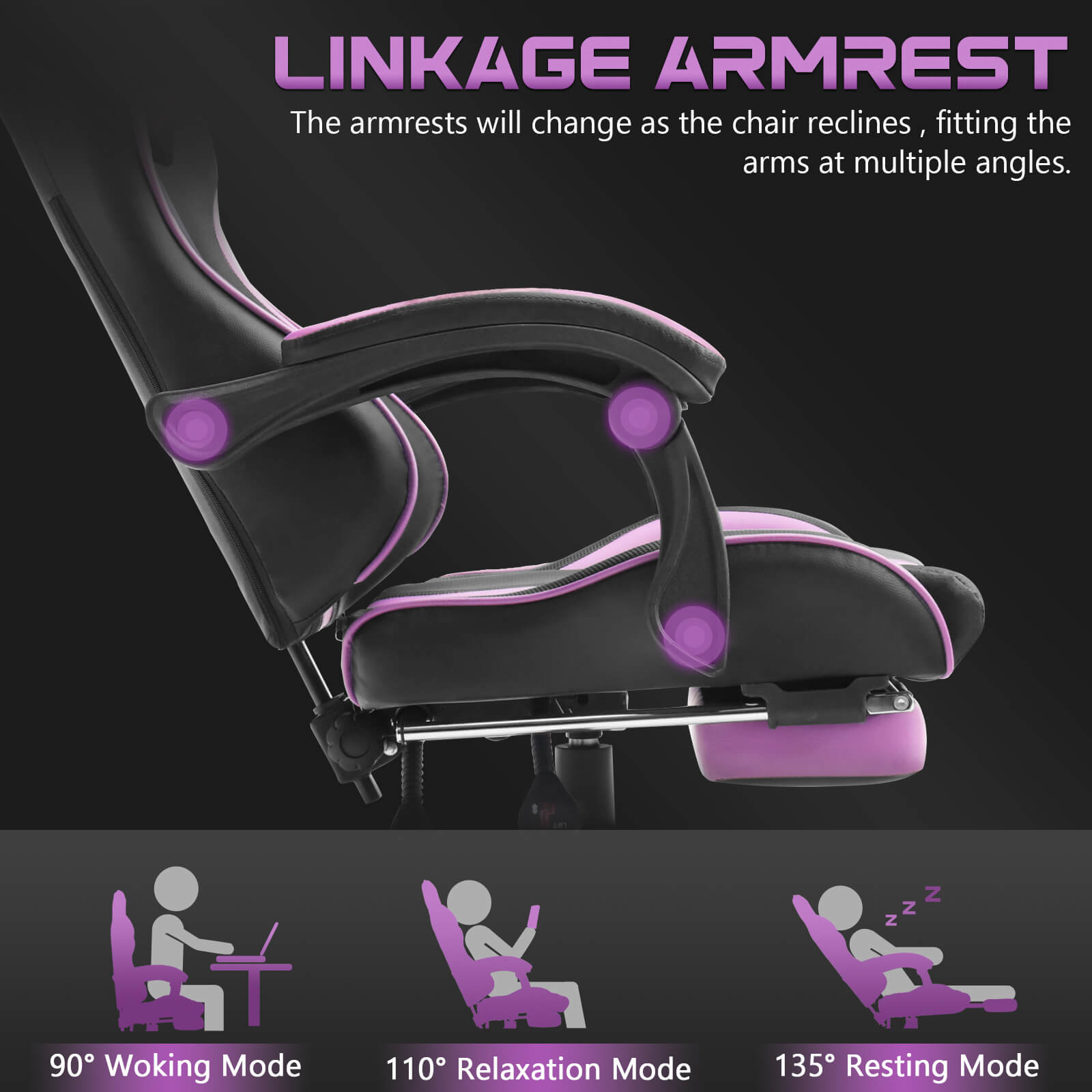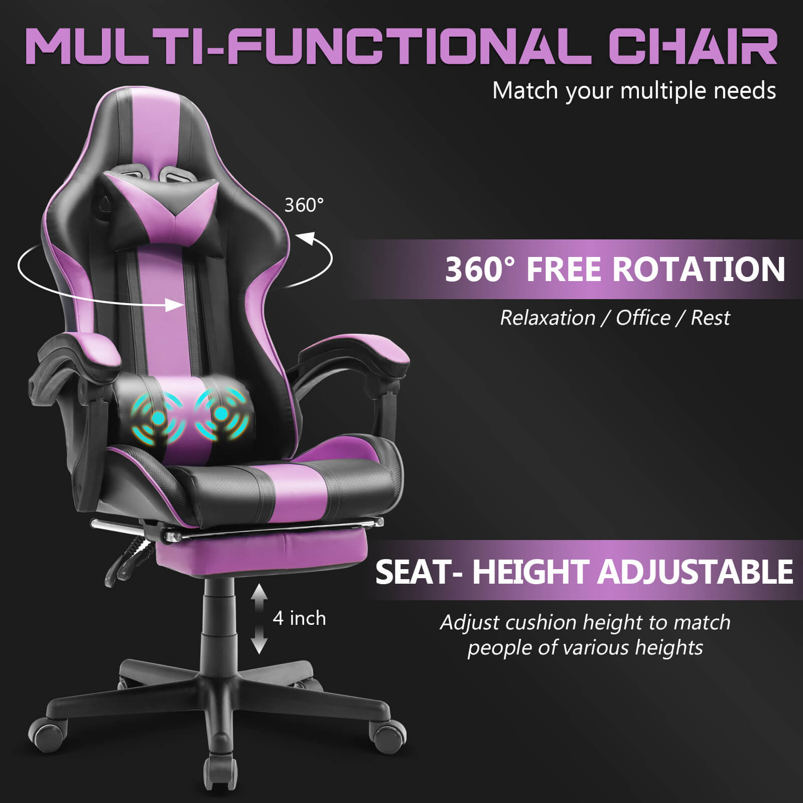 【Only 9 items left】Muses Series Purple Gaming Chairs with Footrest E-Sports Racing Game Chair